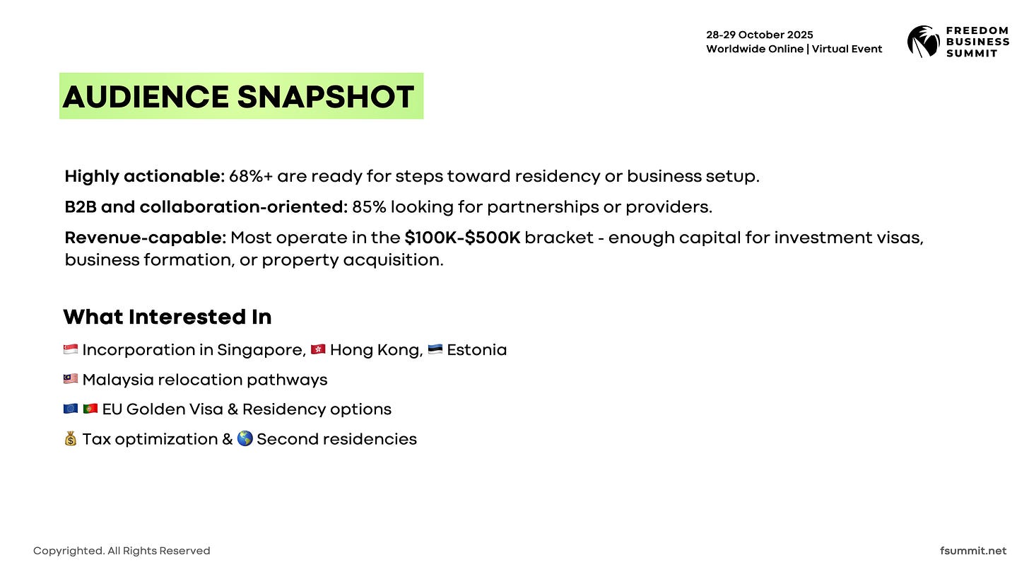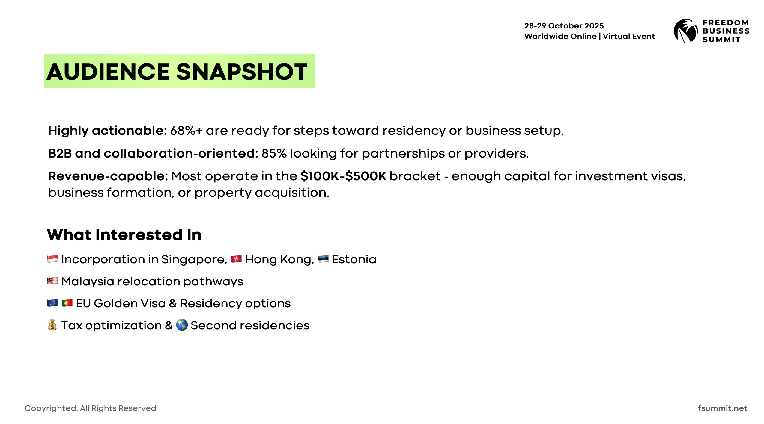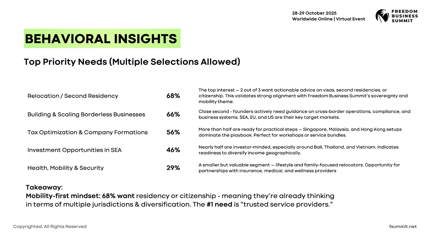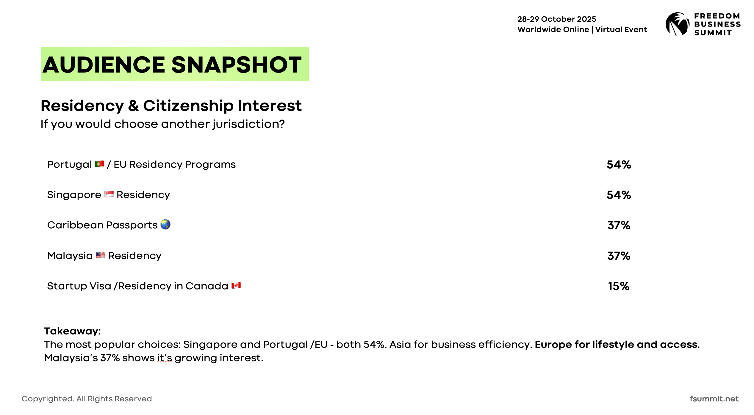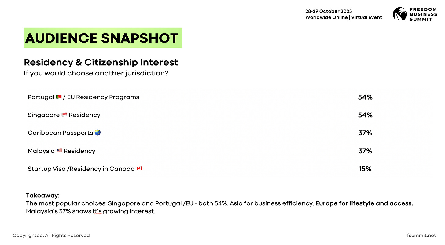 Join the next Freedom Business Summit 2026: Middle East Edition 🇦🇪🇶🇦🇸🇦🇧🇭 – where we’ll go deeper into wealth migration, offshore strategies, and the future of mobility.